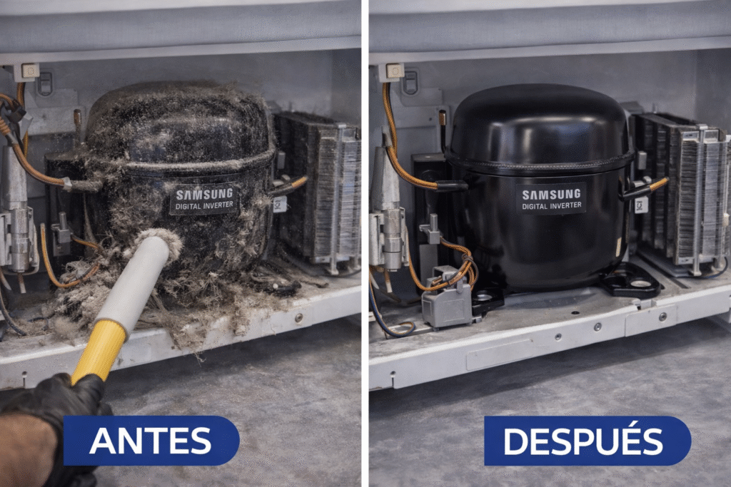 ✔️ 2. Limpieza completa del condensador y compresor