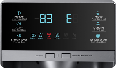 • 88 88, 83E, 85E o 86E – Error de voltaje o potencia: Estos errores pueden ocurrir si hay una subida de tensión u otra anomalía eléctrica, como una caída de tensión, que podría causar una falla de comunicación. Para solucionarlo, desenchufa el refrigerador o apaga el interruptor automático durante 60 segundos y luego vuelve a encenderlo. Si el código vuelve a aparecer, es recomendable contactar al servicio técnico.